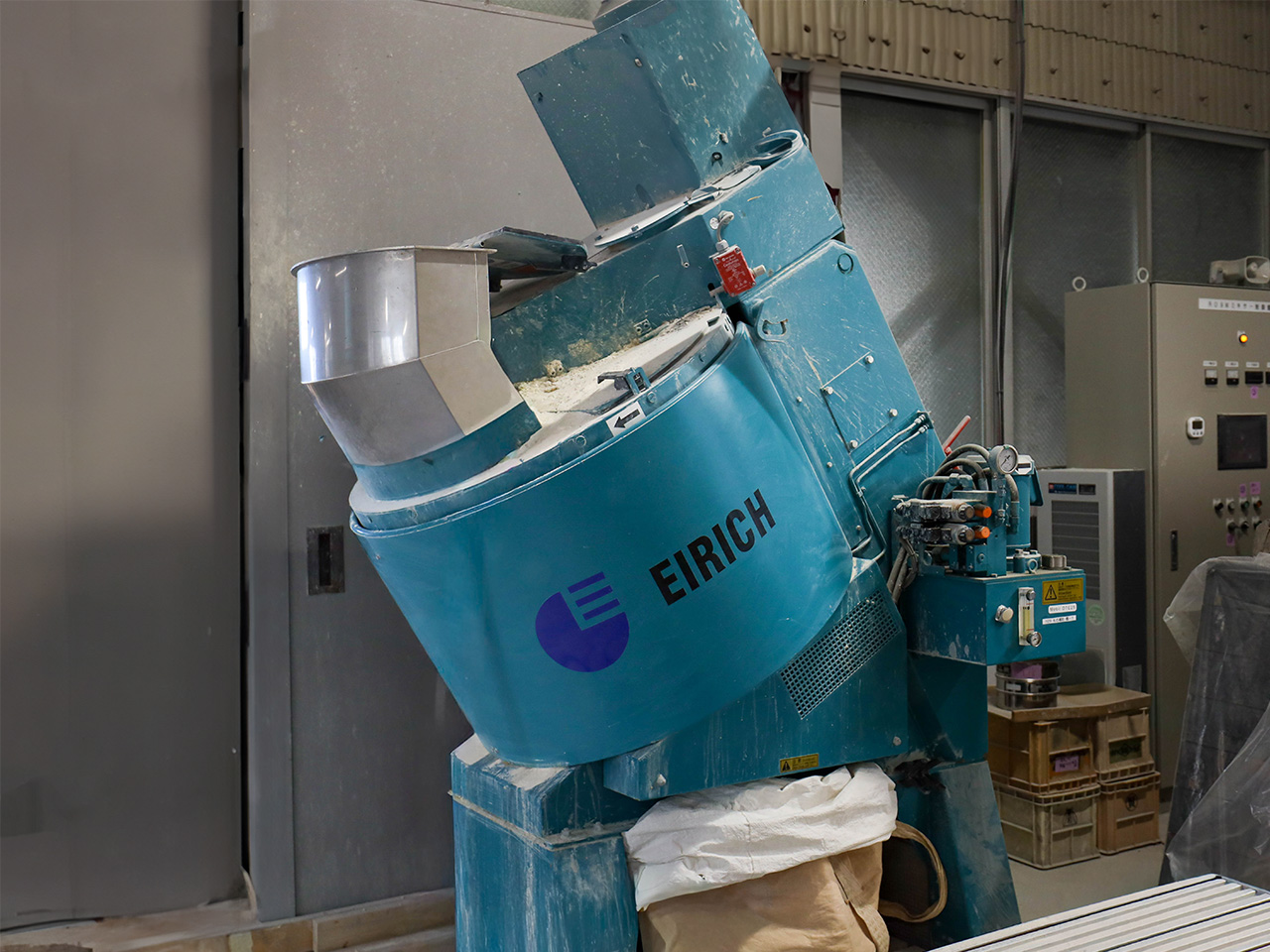 1.乾式攪拌:水分を加える前に、まず乾燥した粉の段階で攪拌することで、粉体同士が完全に混ざり、タイル製造工程の練り込みや加水時のムラを防ぎます