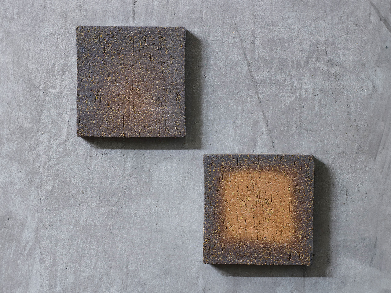 釉薬の原料に「溶融スラグ」を使用したタイル。リサイクル原料を使用しているからこそ実現できる豊かなグラデーションや質感は、多様なシチュエーションで、デザインの選択肢を広げます。
